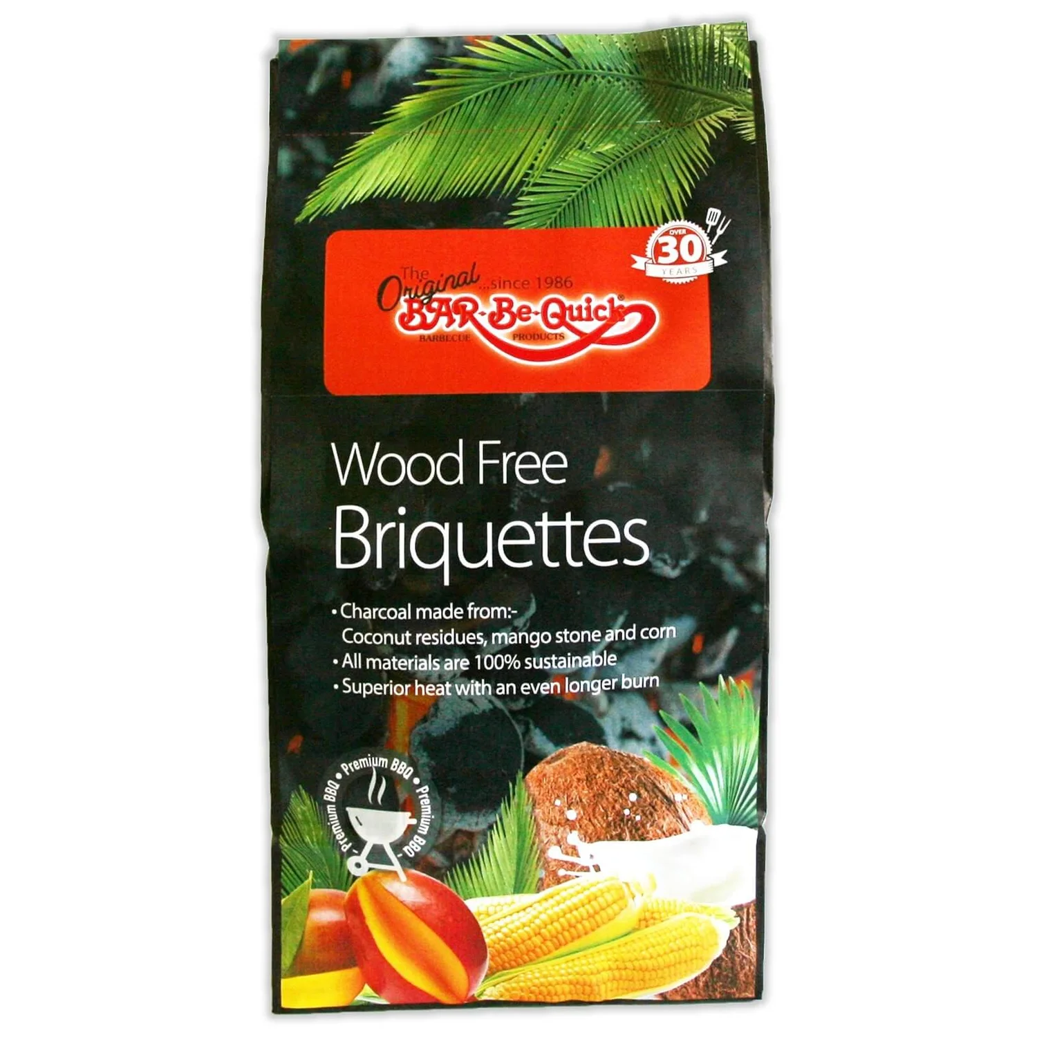 Wood free briquettes, made with coconut residues, mango stones and corn husks.