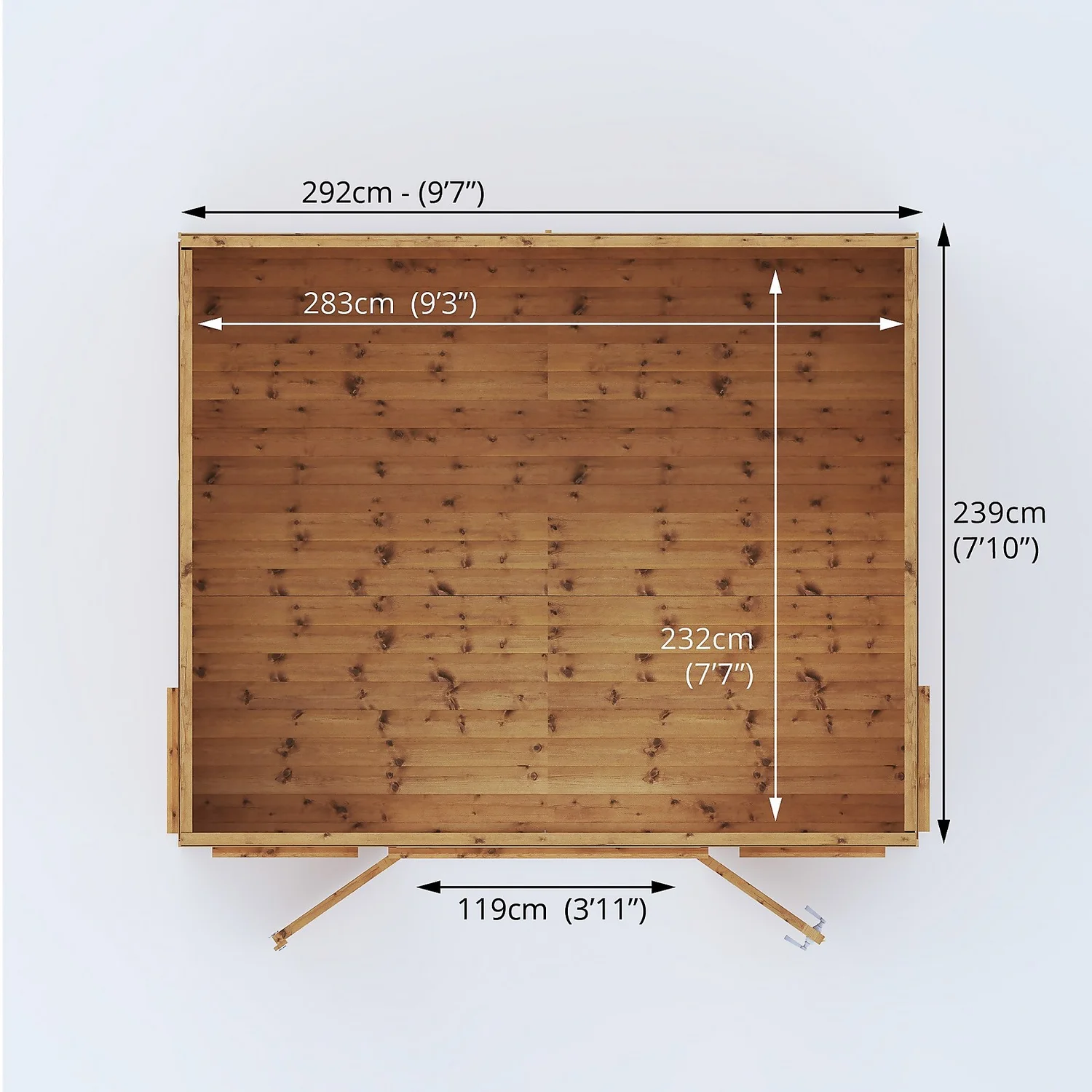 - Tongue & Groove Roof and Floor – Heavy duty interlocking boards create a premium, strong and robust finish