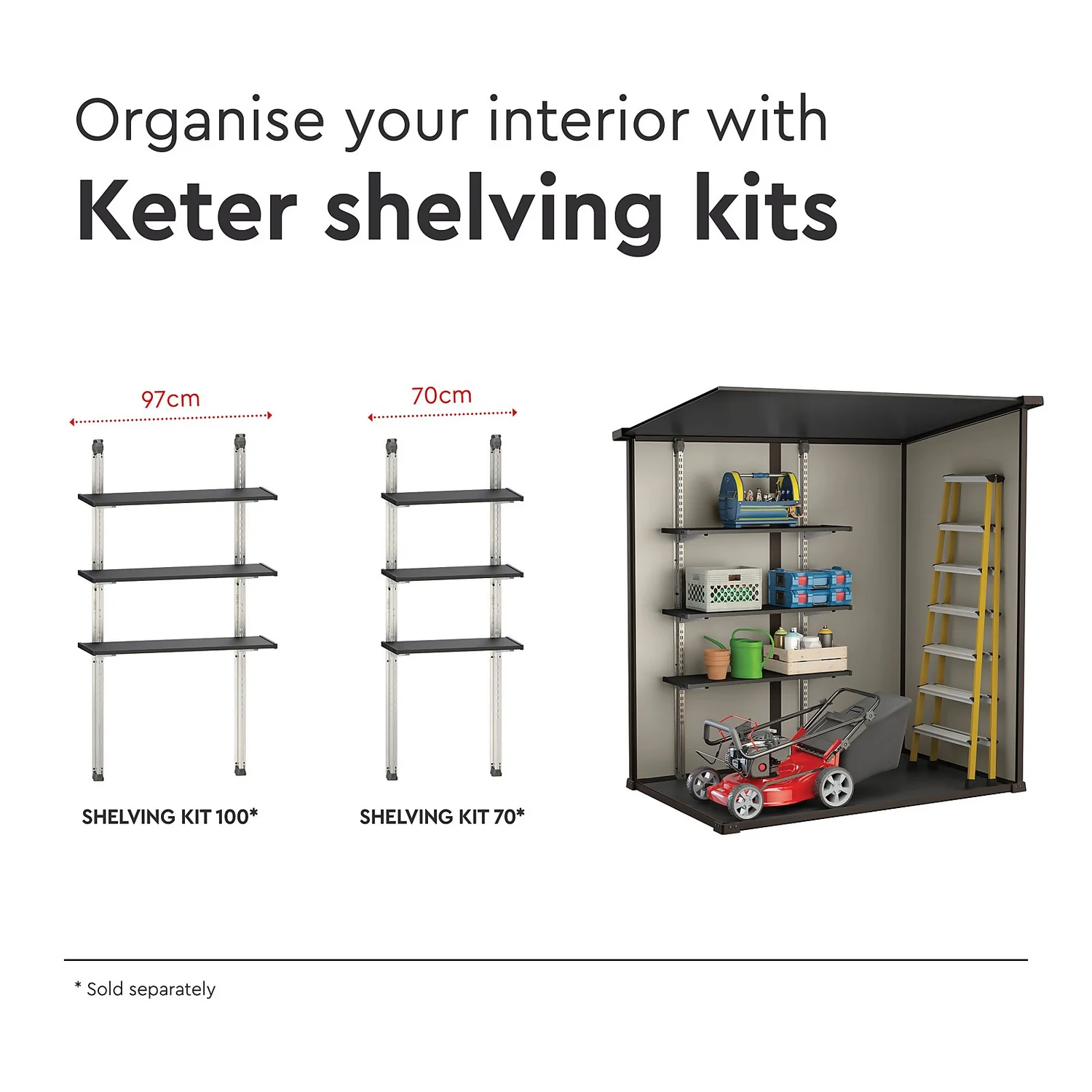 Bring organisation and style to the smallest of spaces. The outdoor Keter pent 6 x 4 garden shed is ideal for tight confined spaces or locations where there is an overhang of trees and other foliage.