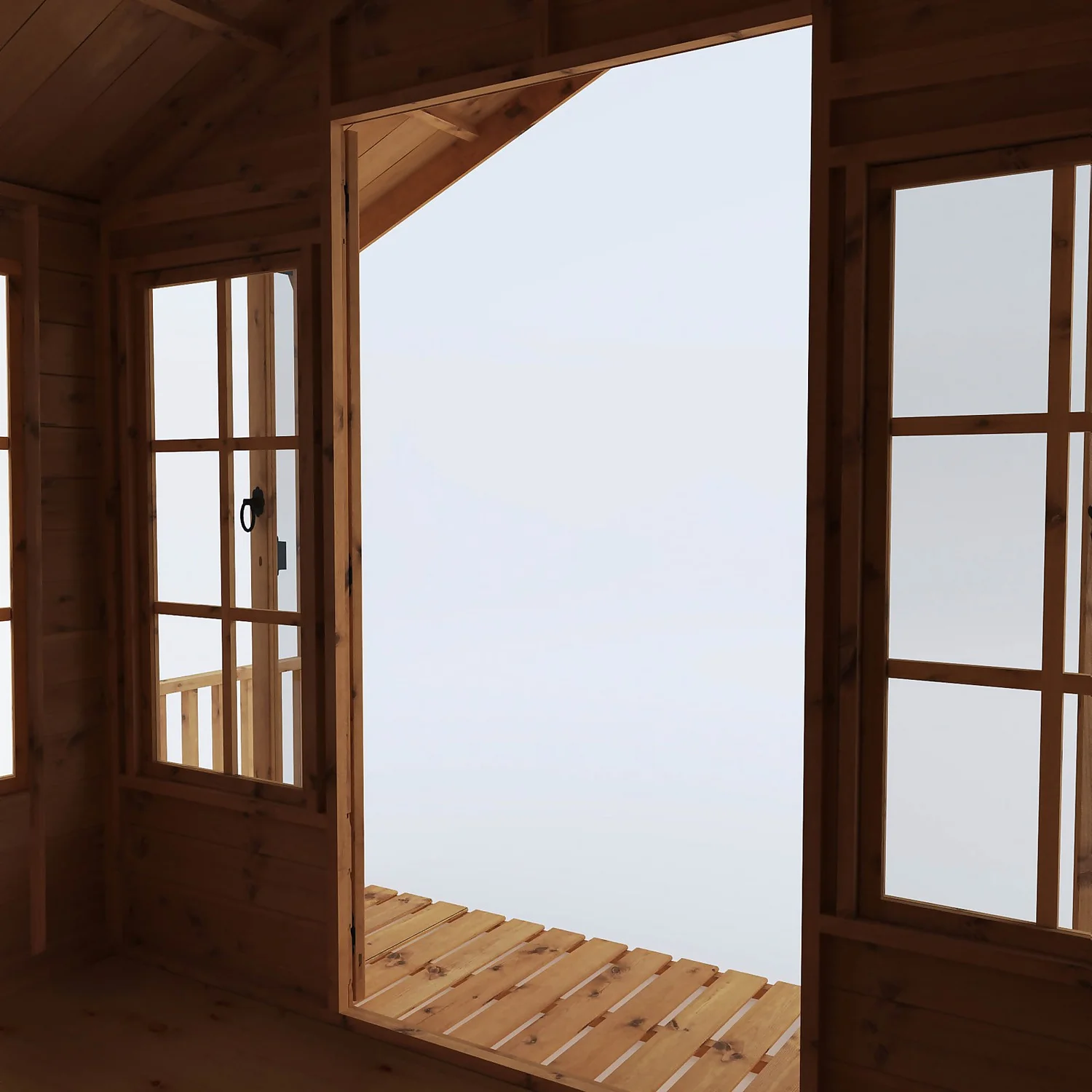 The Mercia 8ft x 8ft Traditional Summerhouse is a spacious and stylish summerhouse that offers the perfect spot to sit back and relax during the summer months. Three large styrene glazed windows allow light to flood the interior and styrene glazed French doors open out onto the sheltered veranda, creating a light, airy and welcoming space to enjoy.