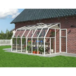 The twin-wall roof panels block up to 100% of harmful UV rays and diffuse the direct sunlight; the crystal-clear side panels offer over 90% light transmission. Strong and attractive, this Hybrid Greenhouse offers years of maintenance free gardening enjoyment.