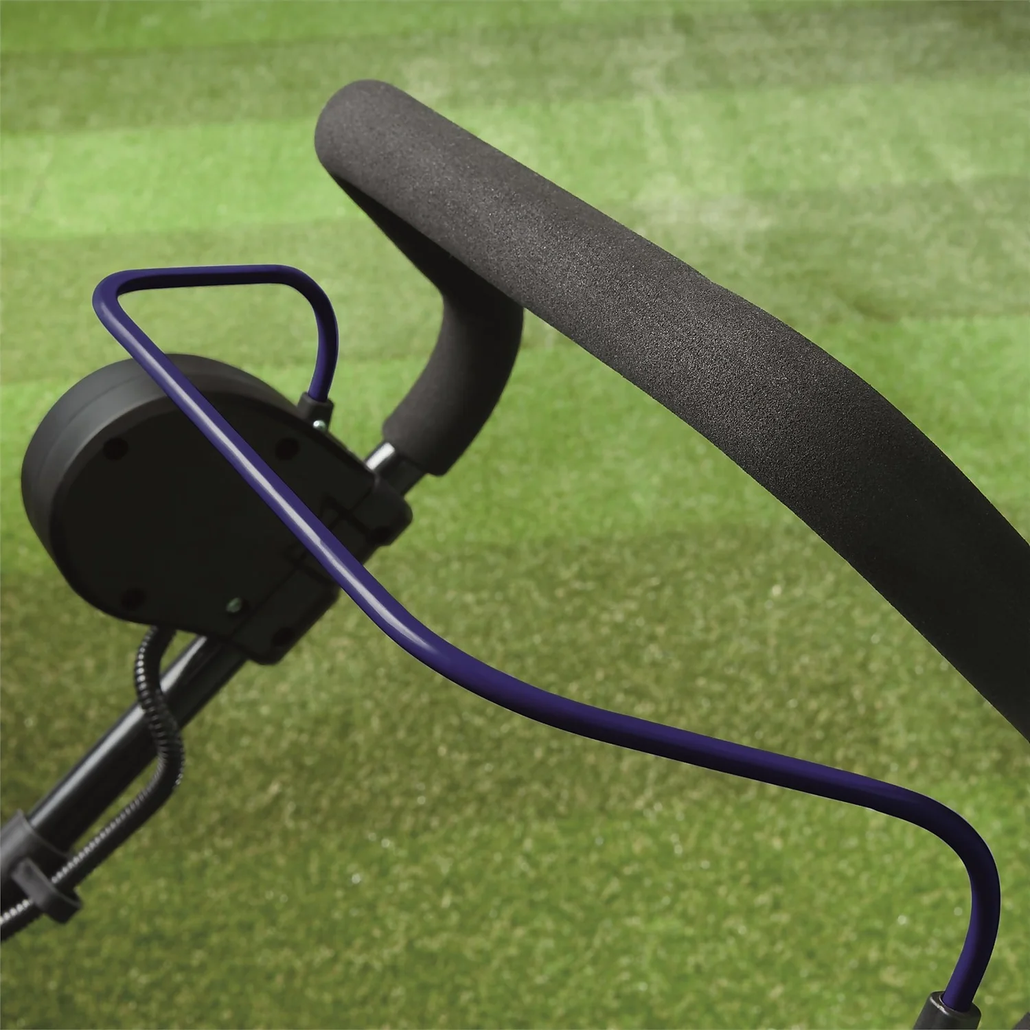 The Powerbase cordless lawn mower has so many features it would be hard to find a comparable product – full bale on / off lever for optimum user comfort, rear roller for a striped lawn effect, front and side grass combs for improved cutting performance, quality 35 litre grass collection bag with fill indicator, 5 centrally adjusted cutting heights (25-75mm), large diameter rear wheel for improved manoeuvrability. The handle comes with quick release fixings and therefore is easily folded for improved storage.